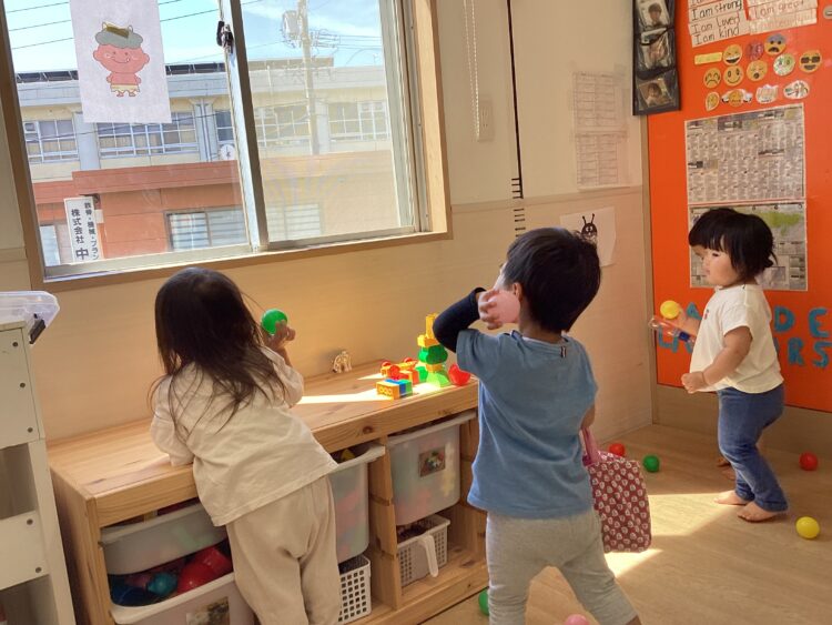 こちらではボールハウスでカラーボールを使って遊びました🎵