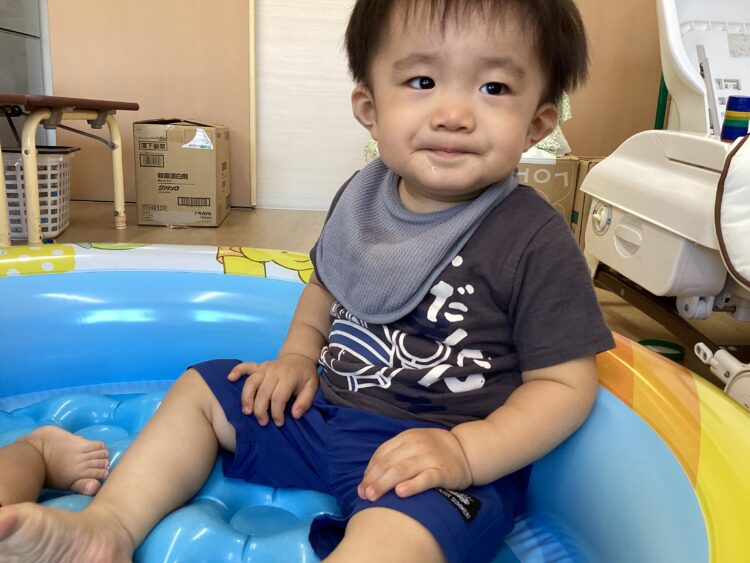 ビニールプールの中に入り、ひとやすみ😌