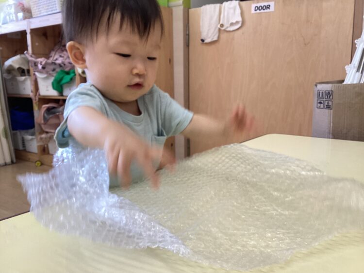 梱包材のプチプチした感触が気持ちよくて、たくさん触って刺激を受けていましたよ🎵