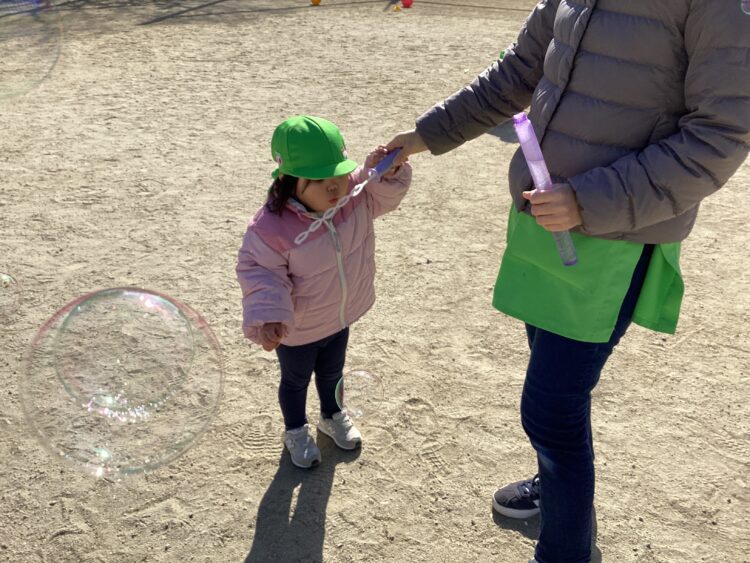 相変わらずシャボン玉も大人気で「ふきたい!」「まてまて~~」と笑顔いっぱい過ごしました![]()