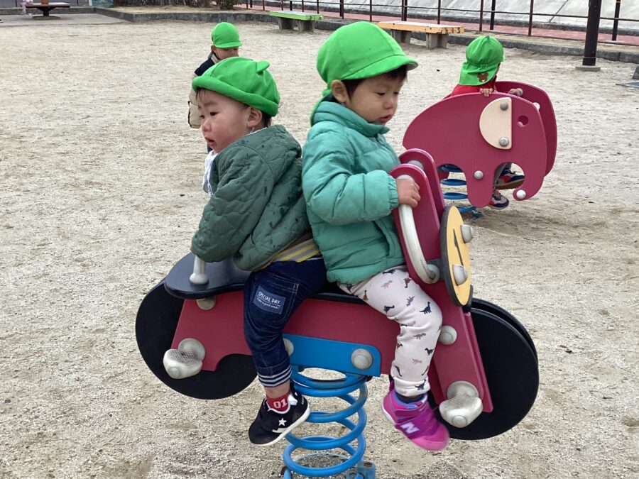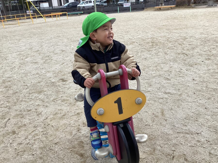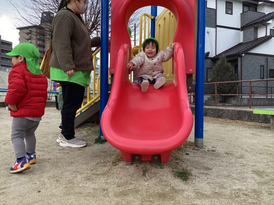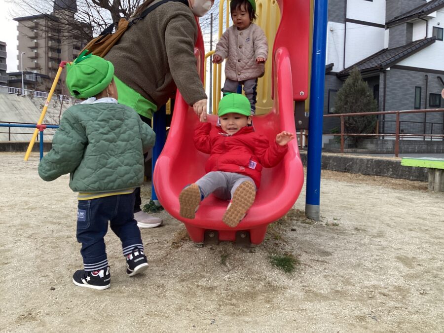 公園に着くと、滑り台やブランコなど好きな遊具を見つけてニコニコ😊