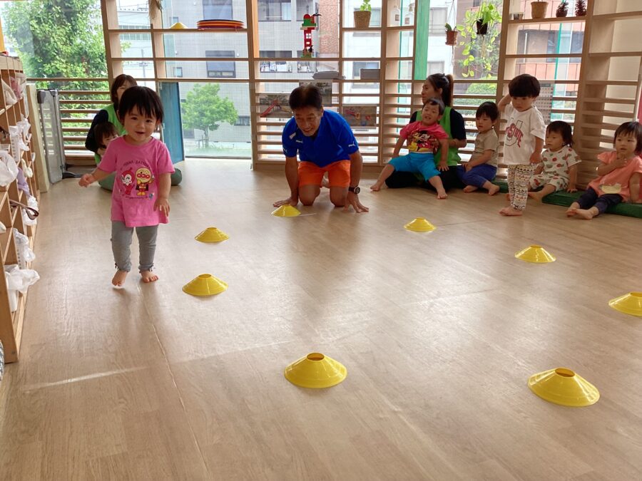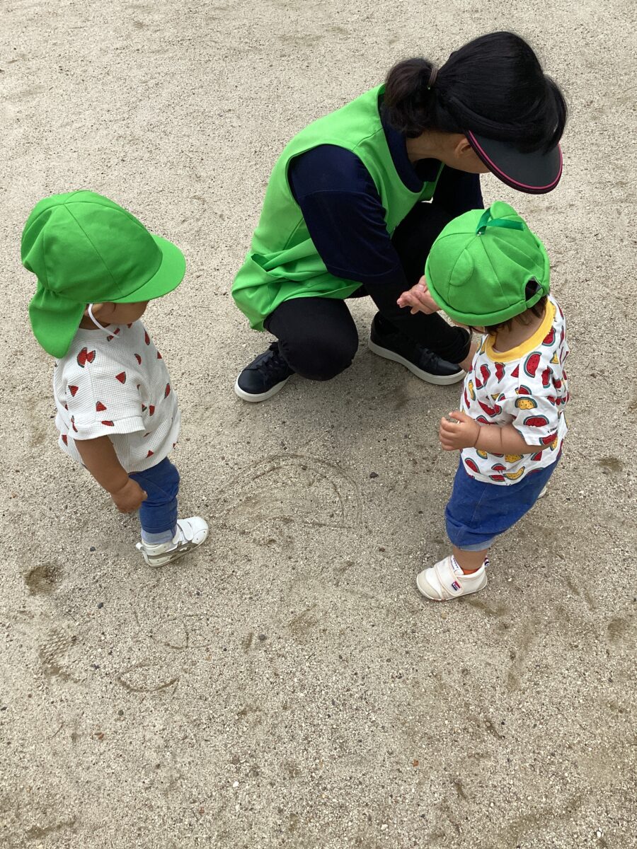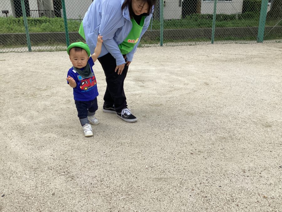 歩けるようになったお友だちは、保育者にしっかり捕まって散策を楽しんでいましたよ‼️