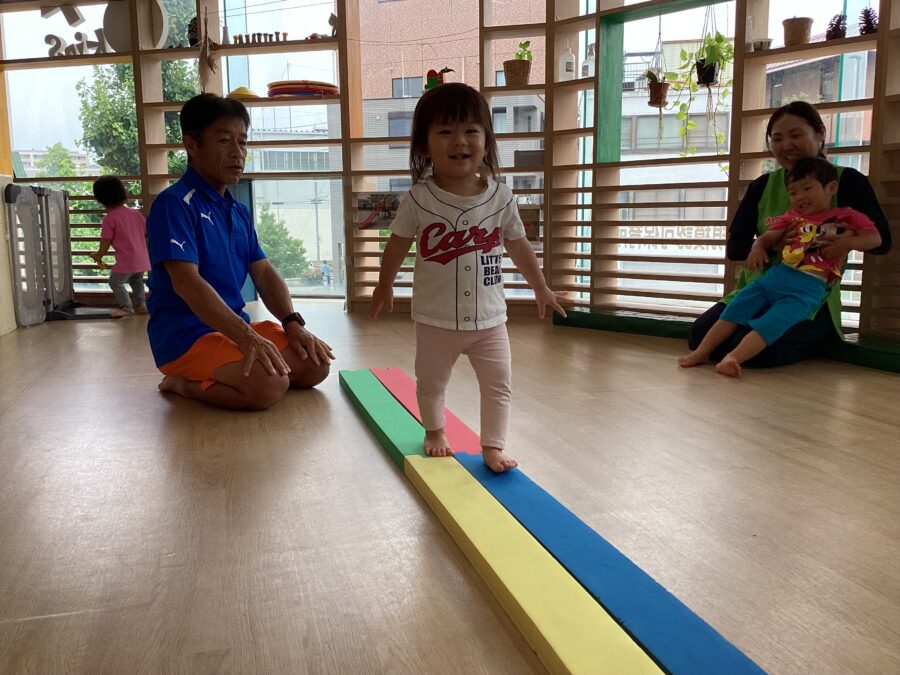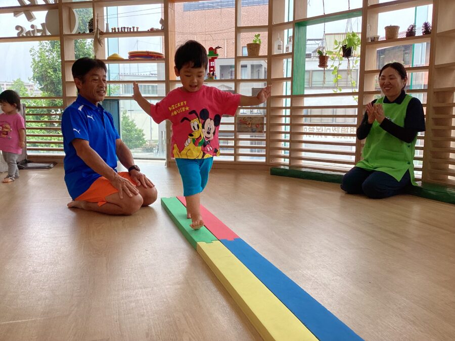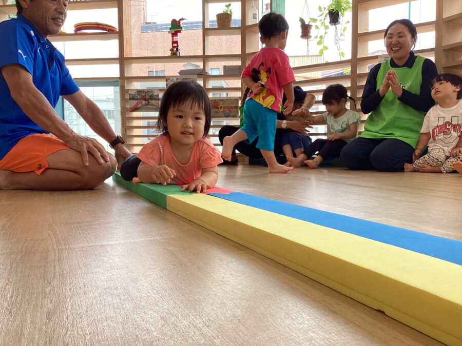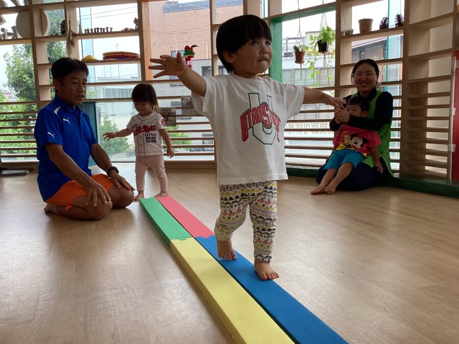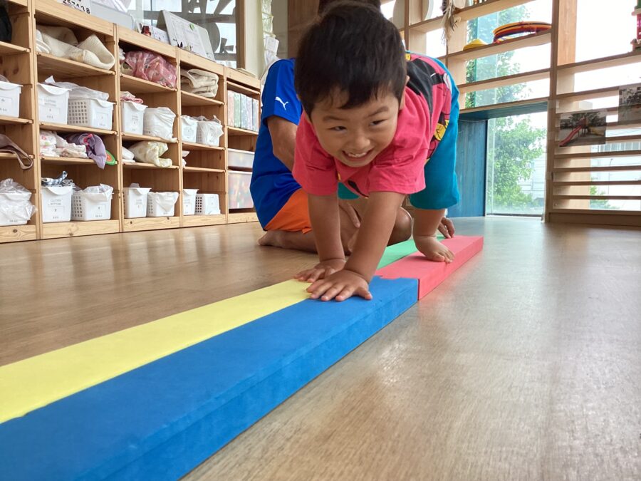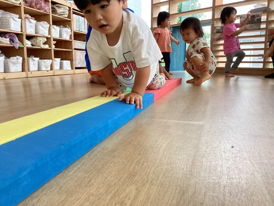 いろいろな渡り方をして、遊びながら平衡感覚を身につけていきます。