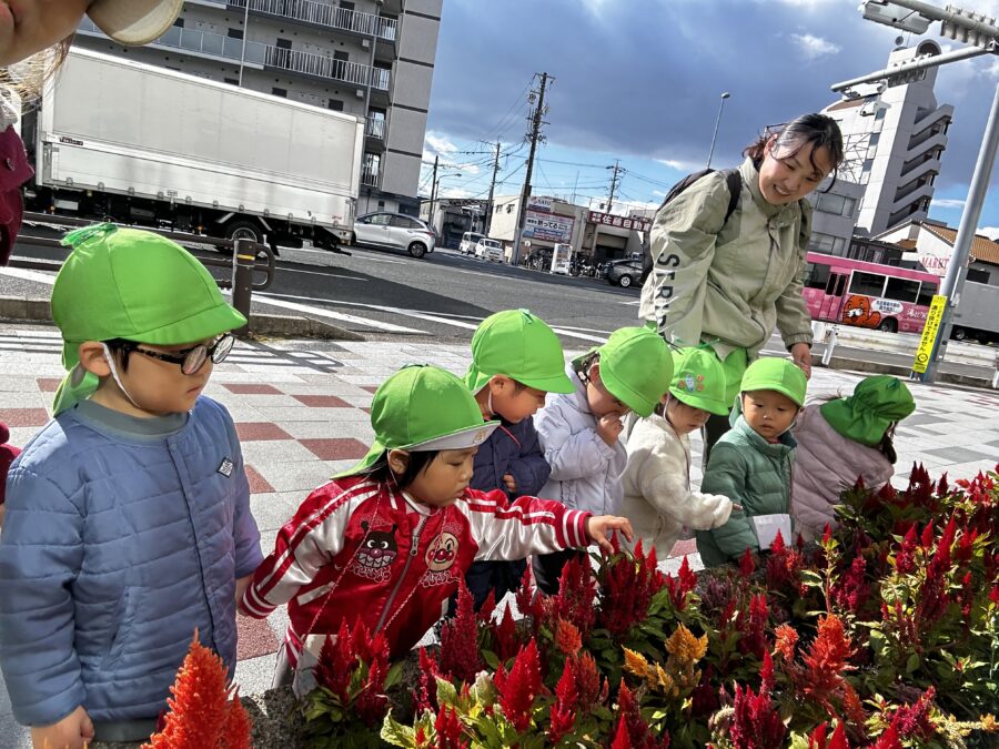 道中、いろいろなお花や植物を見つけ「パープルだね!」「ふわふわだね!」と観察をして楽しみました💐