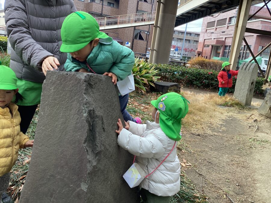 2台並んだ迫力ある消防車を間近で見て「大きいね~」と言ったり、ヘルメットやながーいホースが設置してあるのを見つけて「ここからお水が出るんだよ」というお話を聞いたりして、みんなで目を輝かせました👀✨