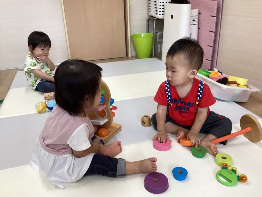 たんぽぽ組さんは木のおもちゃやままごとなど、好きなおもちゃで遊びました。