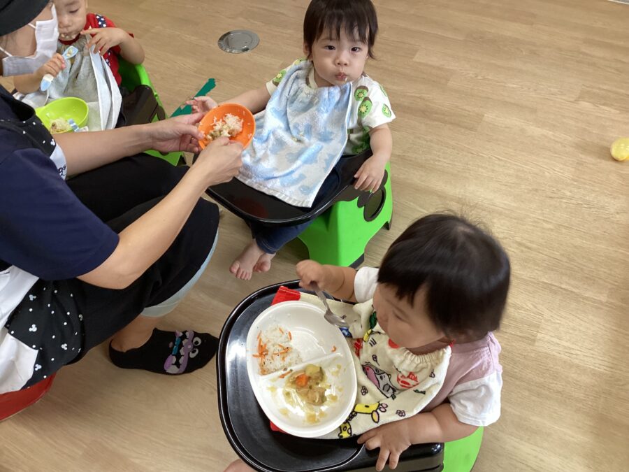 いっぱい遊んだ後は、大好きな給食をご機嫌で食べていましたよ🍚