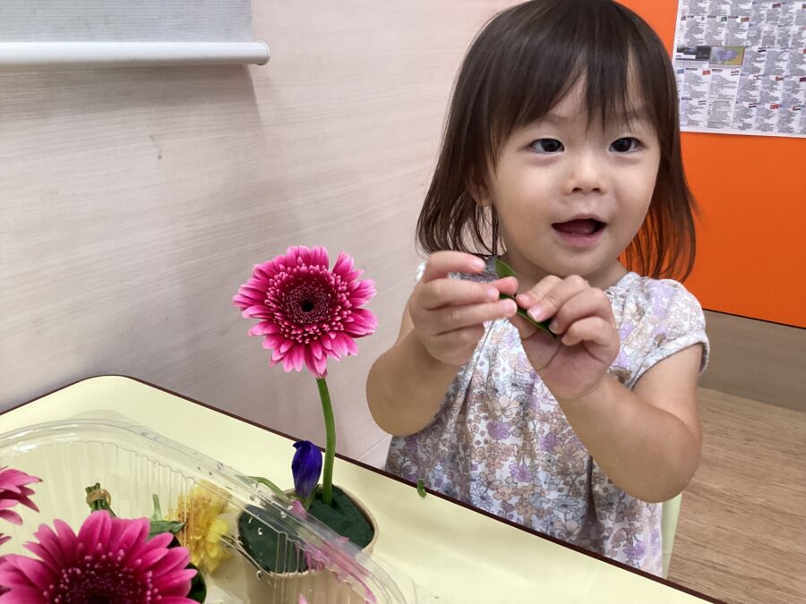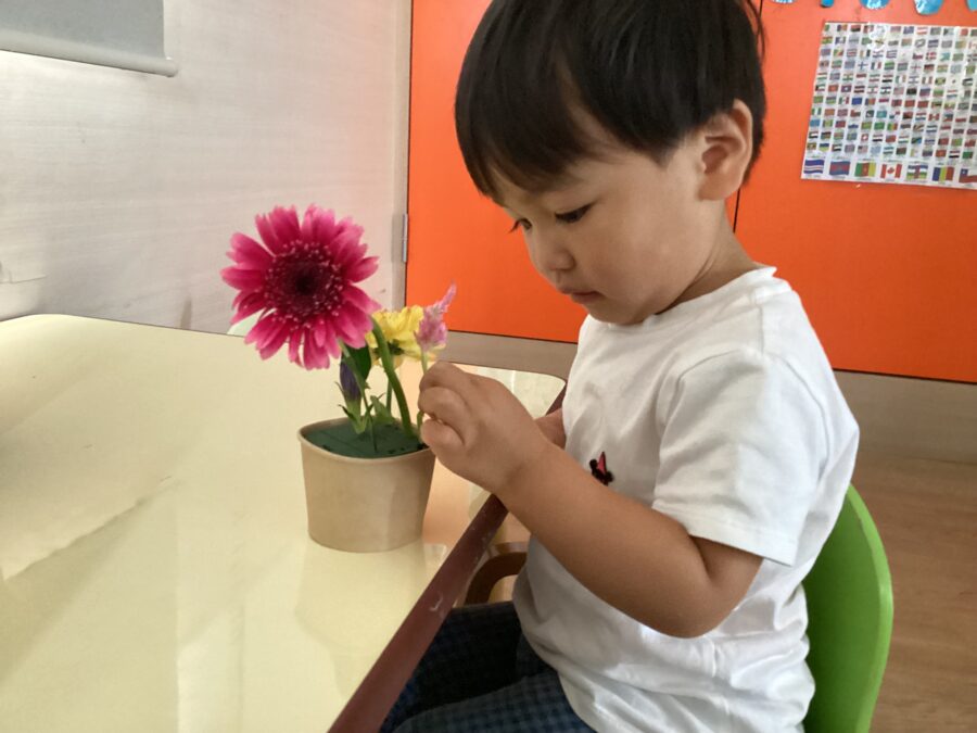 お気に入りのお花を見つけると「これ!」と嬉しそうに教えてくれました😄完成すると満足気に眺めていましたよ✨