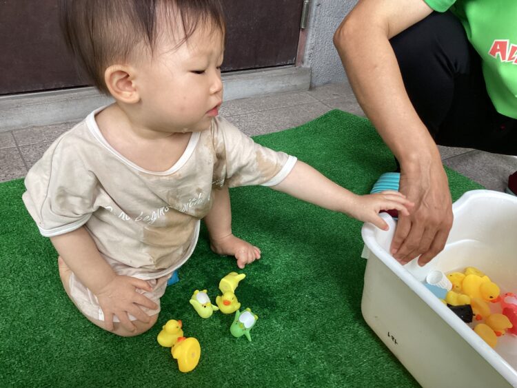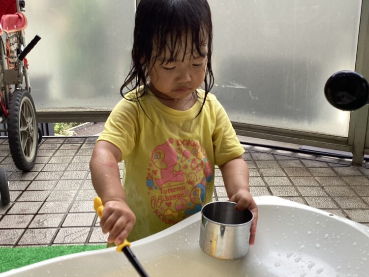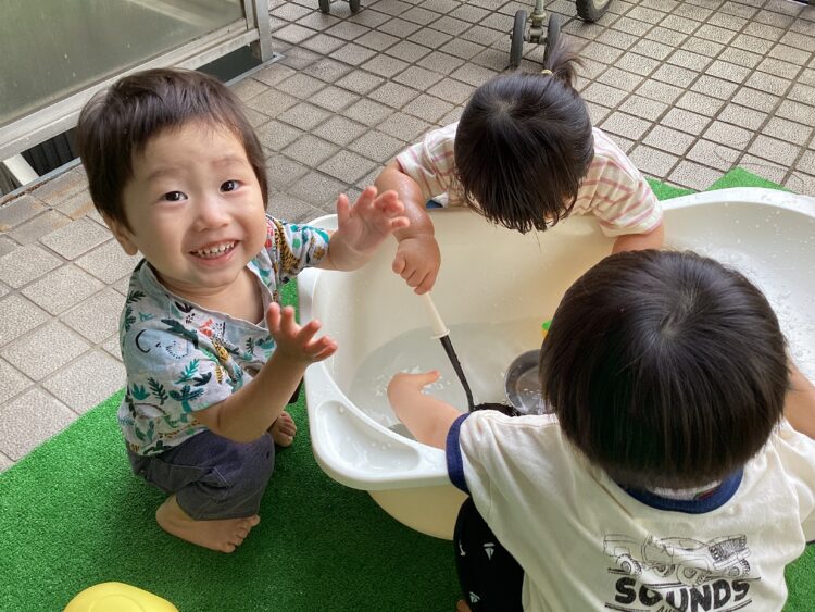 ひまわり組さんは遊び方ダイナミックになってきて、服がびしょ濡れになる程、水に触れることを喜んでいました🙌
