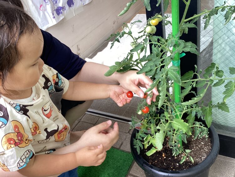 また、園でみんなで育てているミニトマトが赤く色づき、食べ頃に🍅