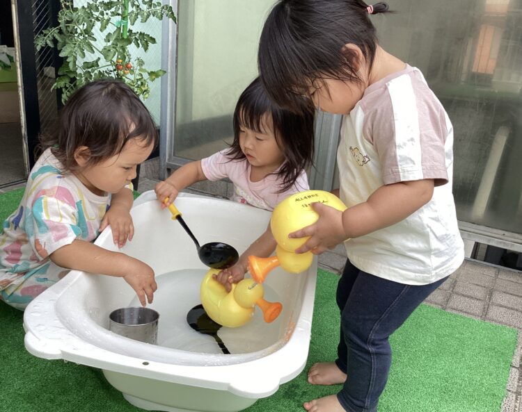 「水あそび準備をしてるんだよ」と伝えると、「やったー!」「⚪︎⚪︎ちゃんもやりたい!」と大興奮でした✨