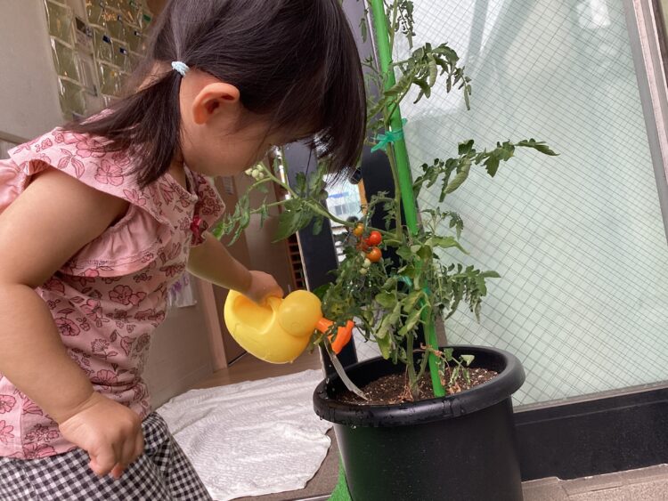園で育てているトマトやきゅうりにも水をあげてくれました🍅🥒