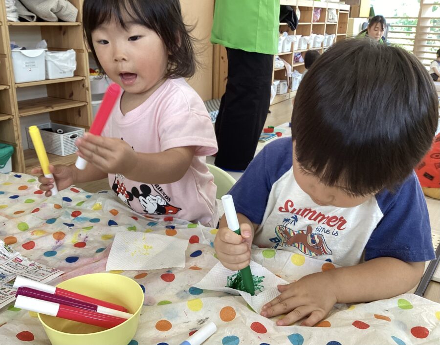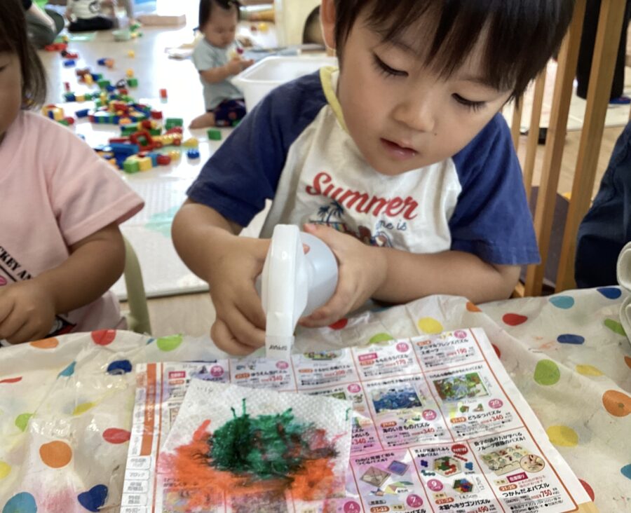 じわじわとインクが広がっていく様子をジーーーーっと見つめると「もっとやる!」と興味津々でした‼️