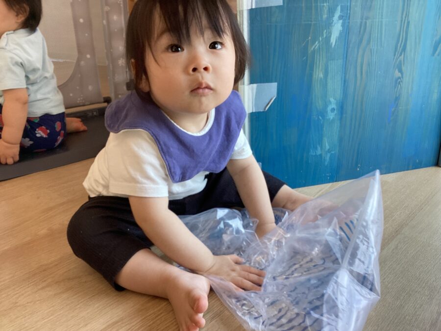 保育者が遊んでみせると「私もやるー!」と保育者の真似をしていました。