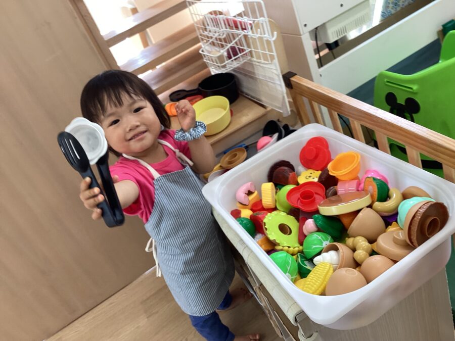 エプロンをつけてままごとも楽しんでいました🎵