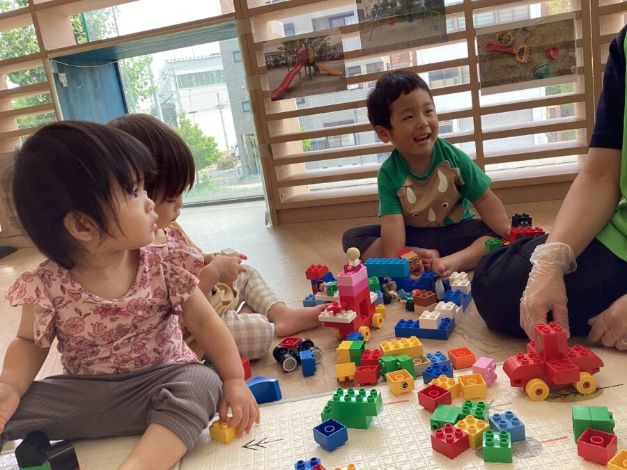 ブロックを思いっきり出して、色んなピースを組み合わせるお友だちもいました![]()