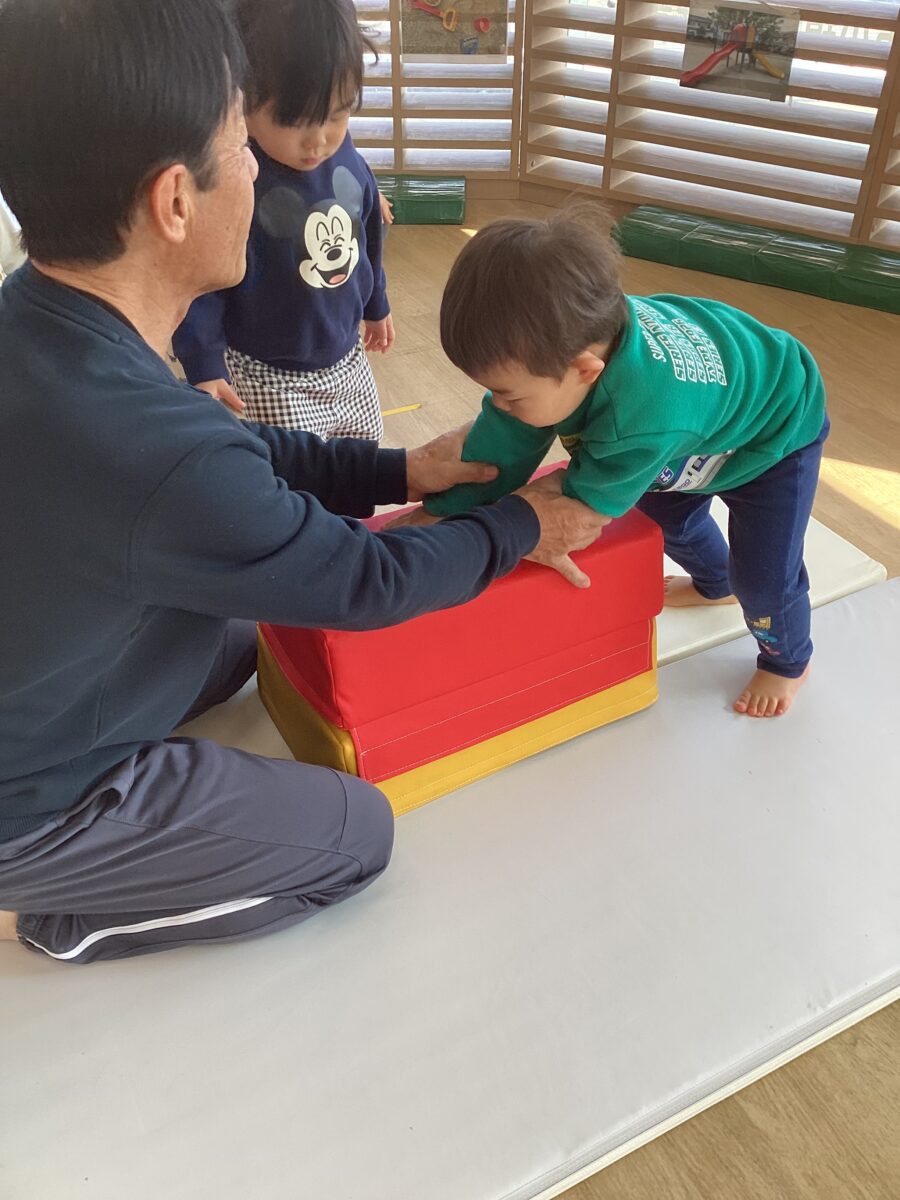 台に両手をかけて、カエルジャンプにもチャレンジしました![]()