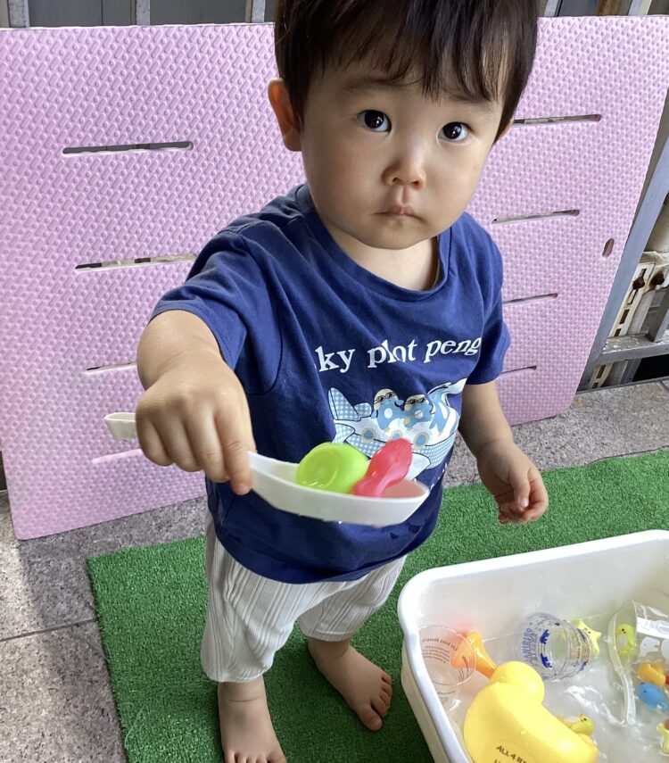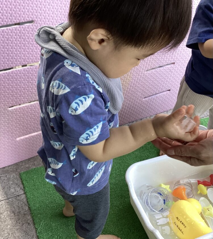 冷たい氷が気持ちよくて、手に乗せて喜んでいましたよ😊