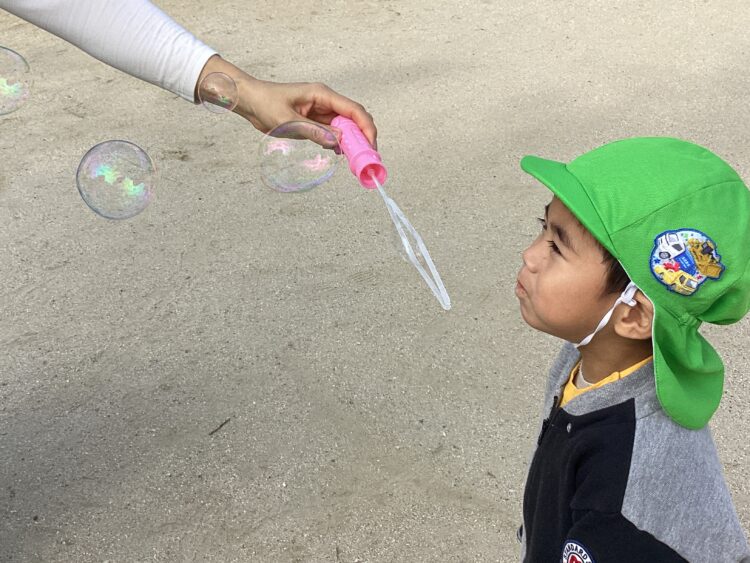 最近シャボン玉を追いかけるより、作る方に興味津々なお友だち🫧