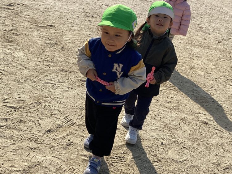 「ガタンゴトン」と効果音を言いながら、今日の給食メニュー「から揚げ駅(穂波園)」を楽しみに帰っていきました😃