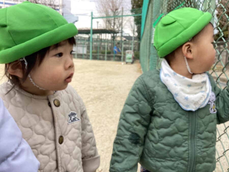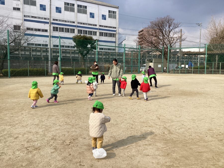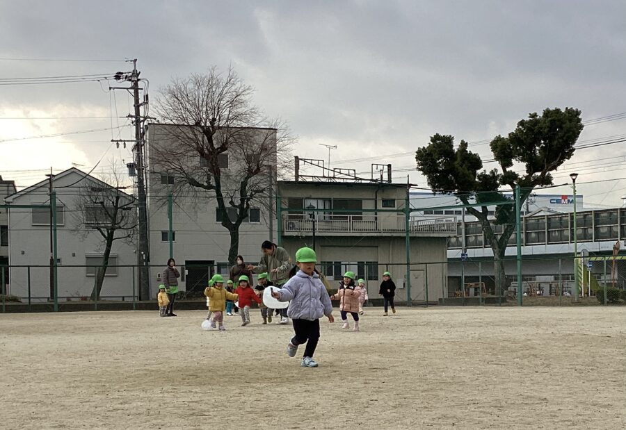 グラウンドに着き、ビニール袋で作った凧を出すと「私もやる〜!」「ぼくも〜!」と元気に走る姿が見られました🤗