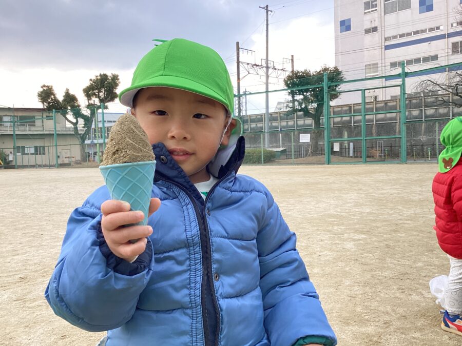 アイスが完成すると「見て〜!バナナ味のアイスだよ🍦」と嬉しそうに教えてくれました🍌