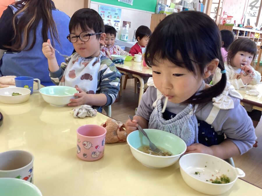 今日は大好きなうどんだったので、チュルチュルと音を立てながら、美味しそうに頬張っていましたよ🩷