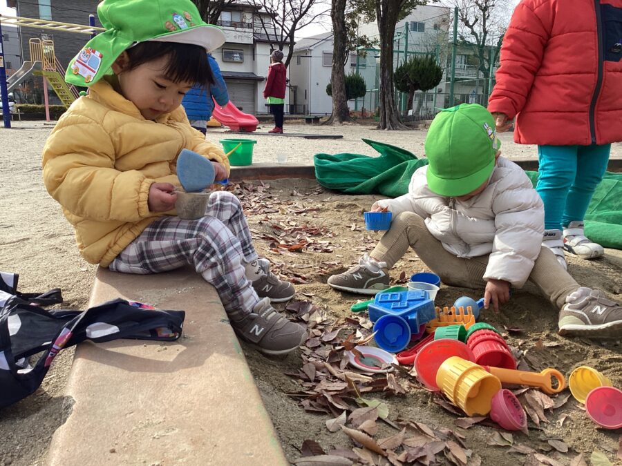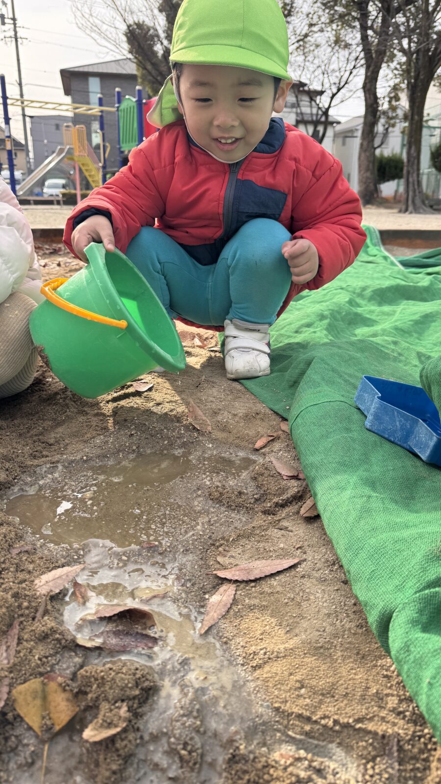 お砂場では「せんせいお水入れたい!」というリクエストがありました![]()