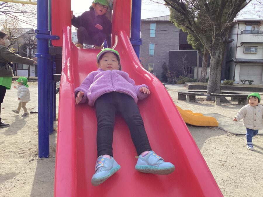 「ブランコのりた~い」「滑り台するの!!」などお散歩では遊びを想像しながらみんな楽しく歩いていましたよ🌳
