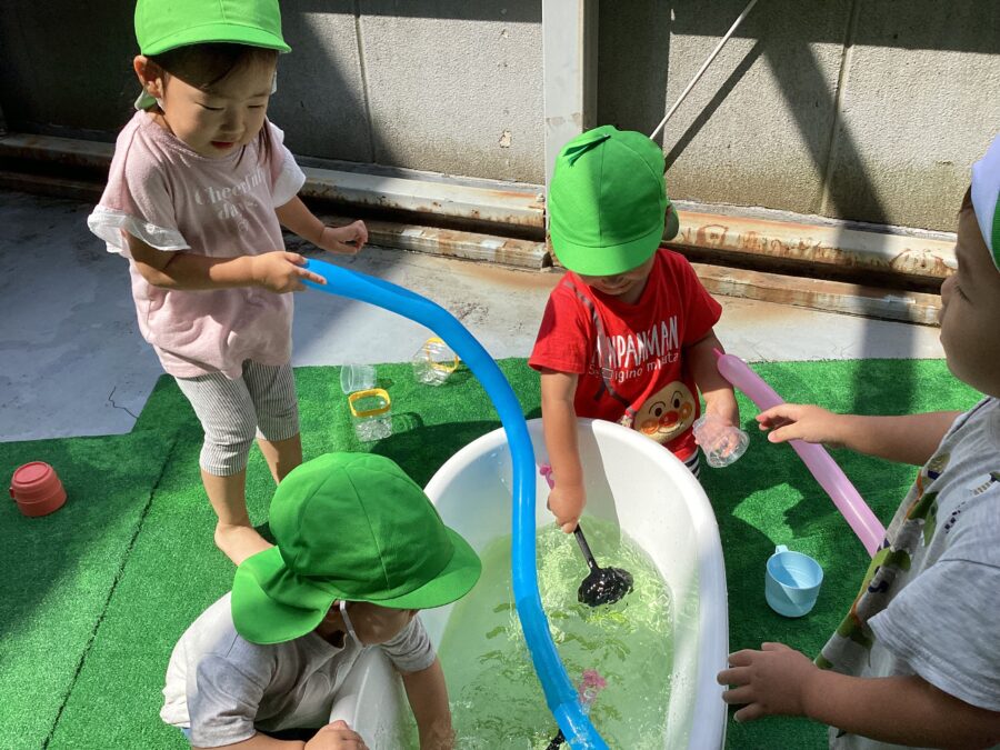 ※暑さもやわらいできたので、本日をもって水遊びを終了したいと思います。今まで、水遊びの用意をありがとうございました✨
