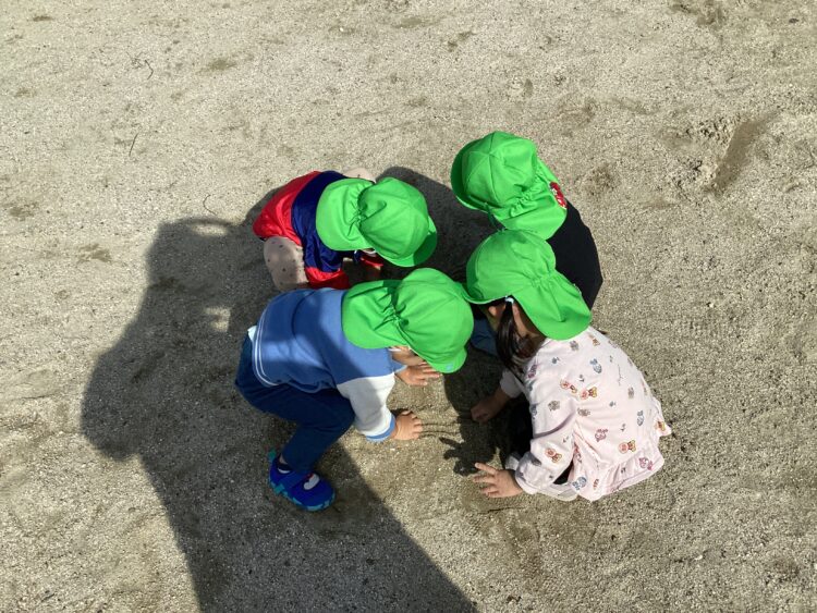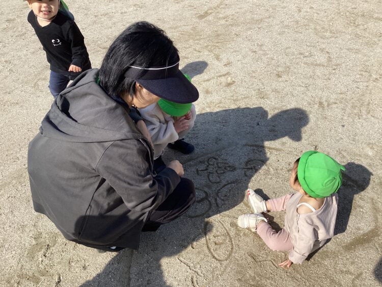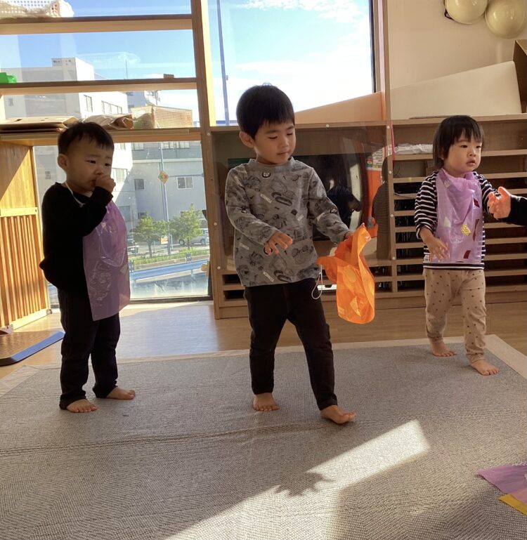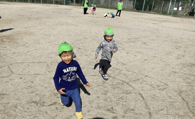 戸外では風が吹いて肌寒い時もありましたが、元気いっぱいのみんなはたくさん走って体を温めながら楽しんでいました🎵