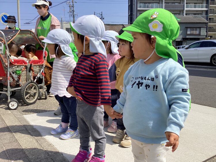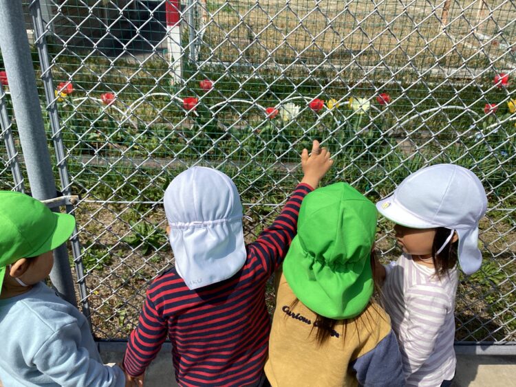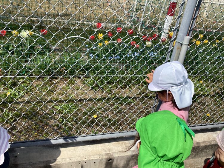 歩きながらチューリップを見つけて歌を歌ったり、アリさんが歩いているのを見つけたり、、