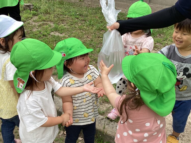 ひまわり組さんたちは履いてきた靴下のデザインを見せ合いっこしながら、自分で支度を進めていました![]()