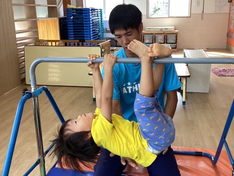 今回は鉄棒挑戦です!ぶら下がったりぶたの丸焼きという技をしたりしました。