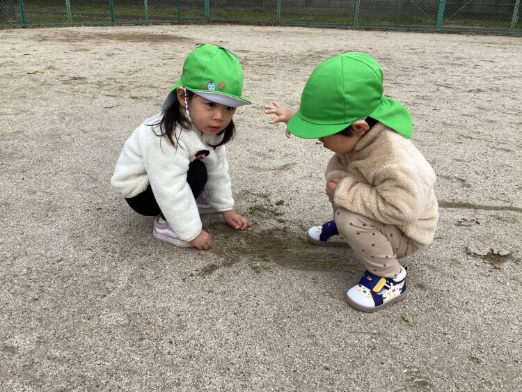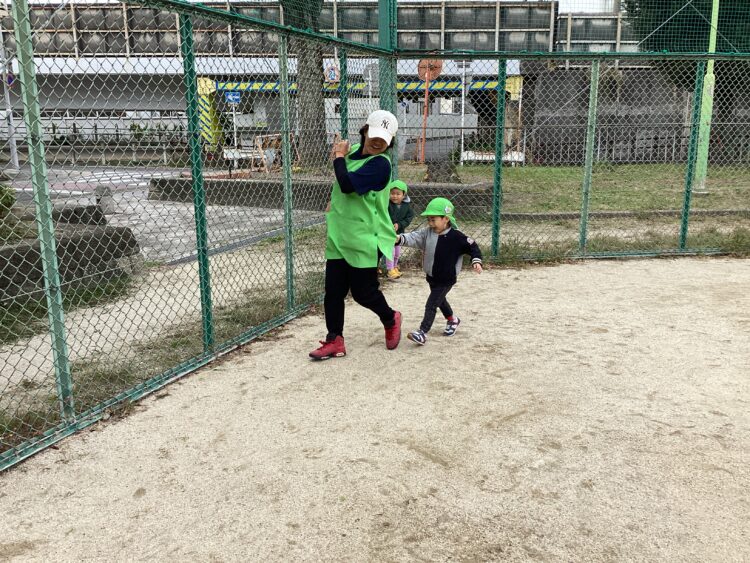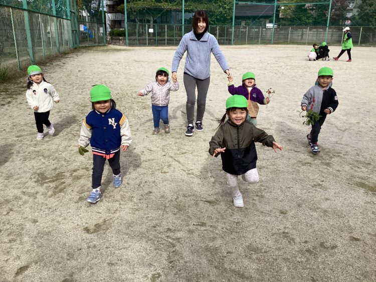 保育者が走り出すと「まてまて〜!」「はやいよ〜」と、追いかけっこが始まりました🏃♀️