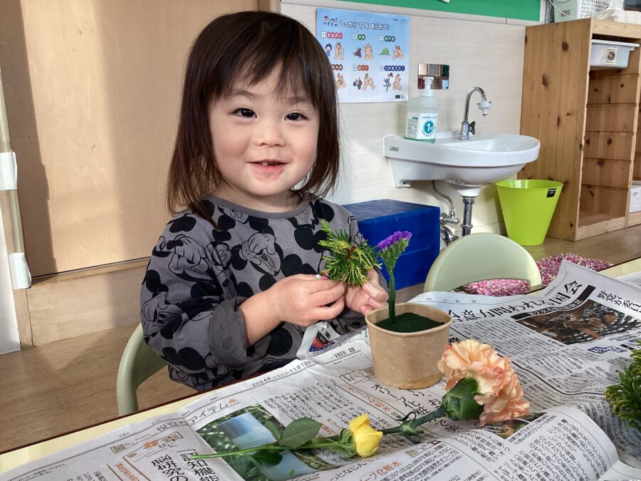 保育園に着くと、キレイなお花がたくさん届いていたので、やりたいお友だちからフラワーアートを楽しみました✨