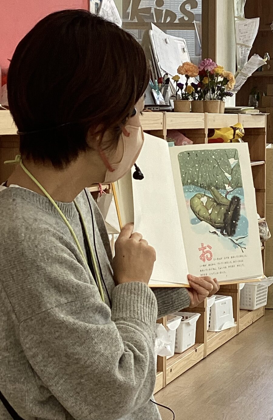 先生が読んでくれるお話を聞きながら、