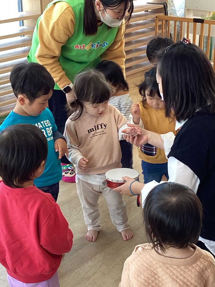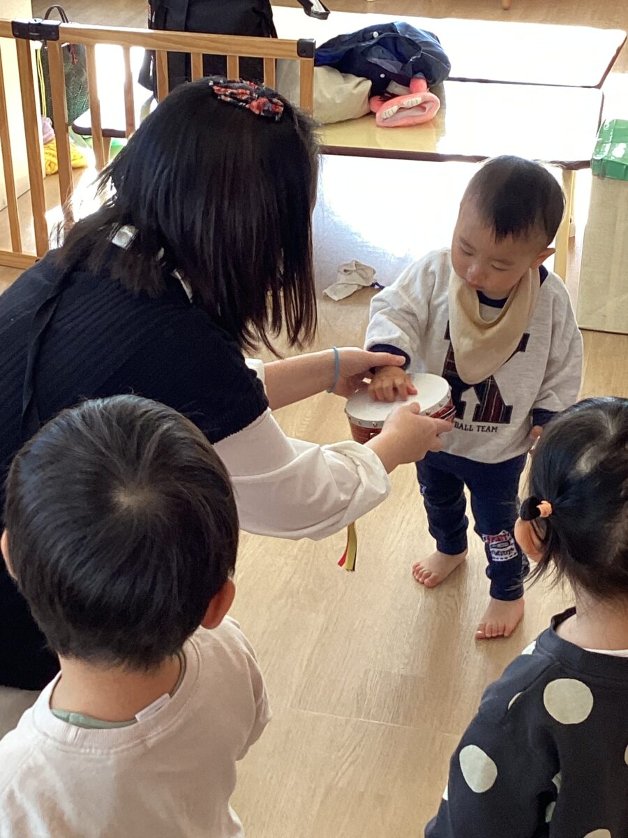 みんなタンバリンに興味津々👀自分の順番が来るのを心待ちに待っていました🤗
