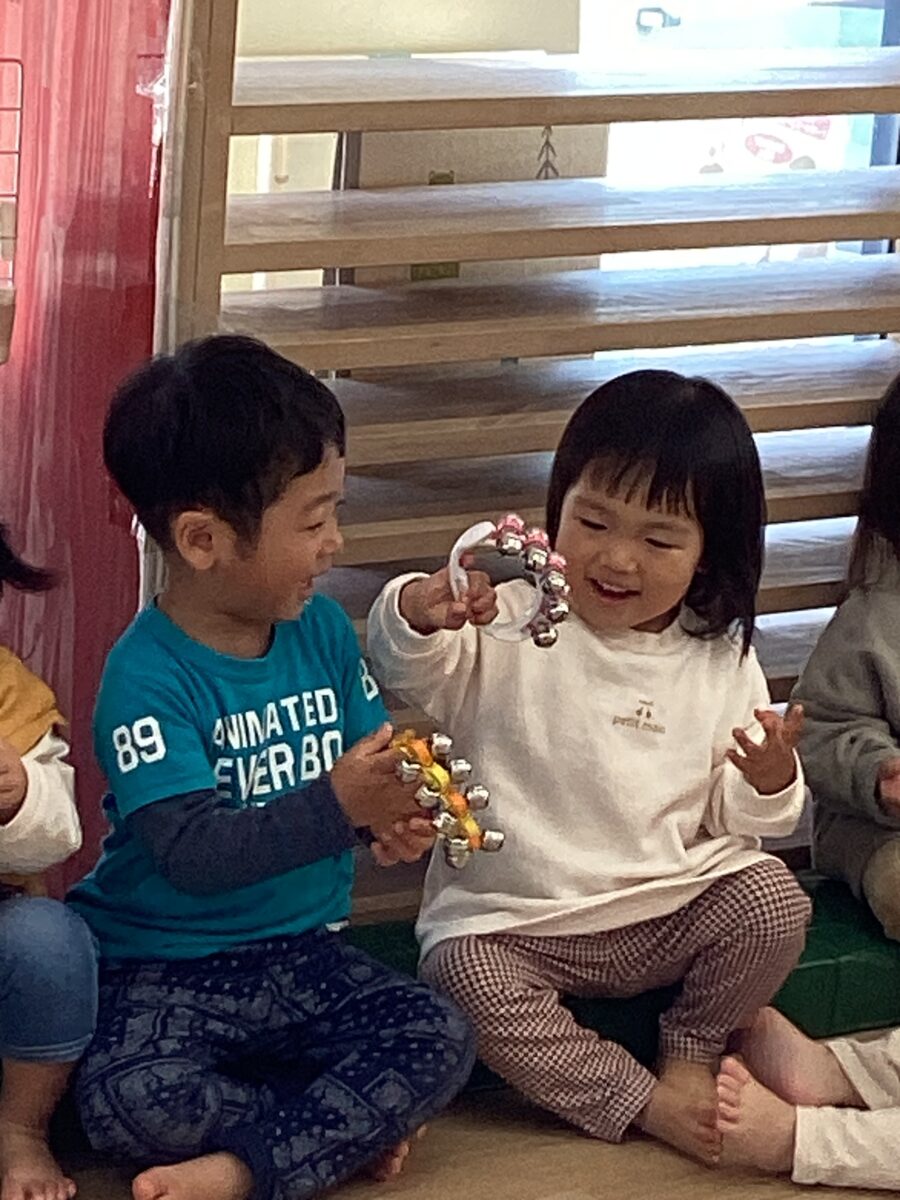 鈴やマラカスをもらうとみんなニコニコで音を鳴らしていました✨