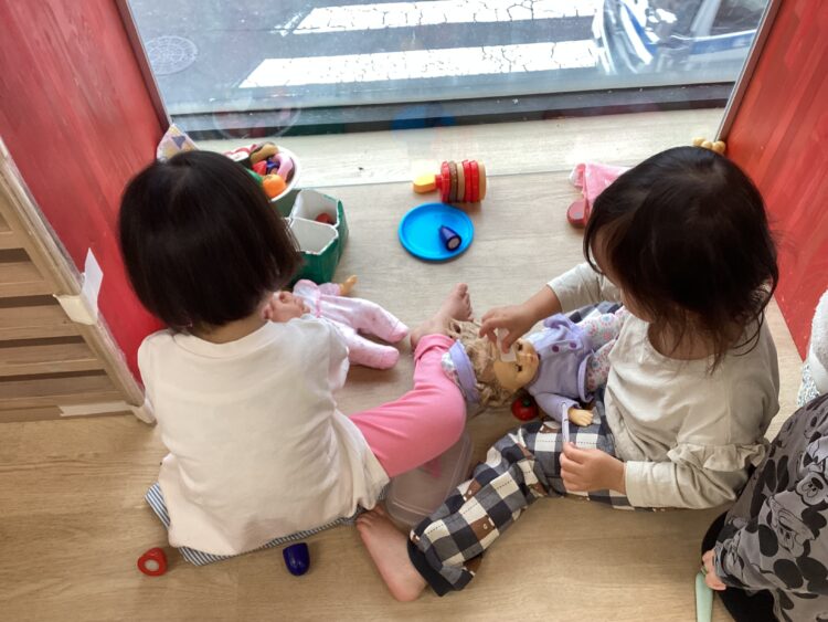 「おねつありますね〜」「これぺったんしておいてくださいね〜」とお医者さんになりきって楽しんでいましたよ🧑⚕️