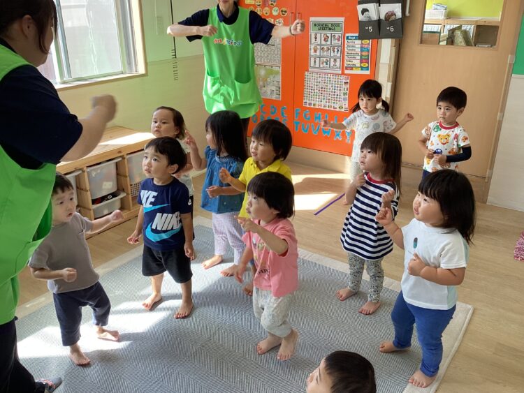 今日は公園へ行く前に運動会の時に踊るリズムあそびをしました🕺