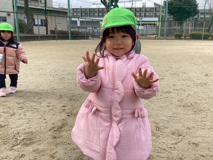 「寒いから、みんなで輪になろう😝」手を繋いで大きく広がったり、