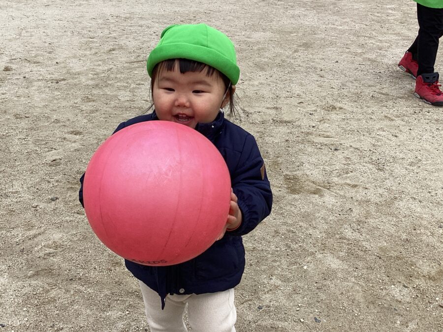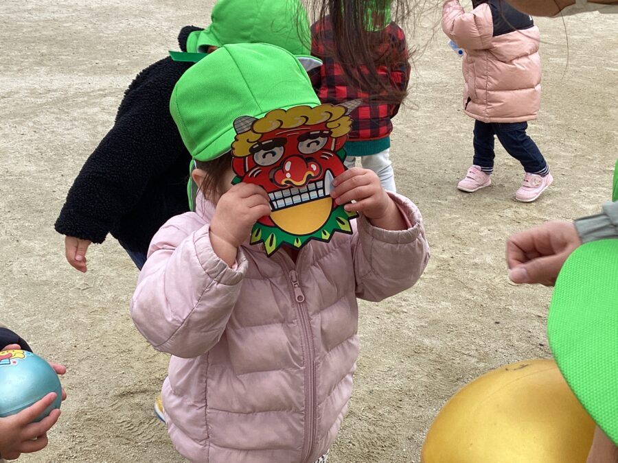 ボールを見つけると大きな豆に見立てて豆まきあそびに発展していましたよ🎵