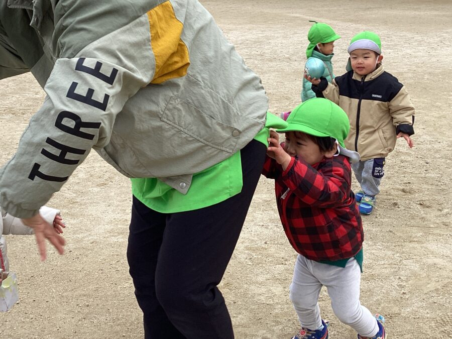 さて、グラウンドでは到着すると「きゃ~!!」と元気な声と共に追いかけっこがスタート![]()