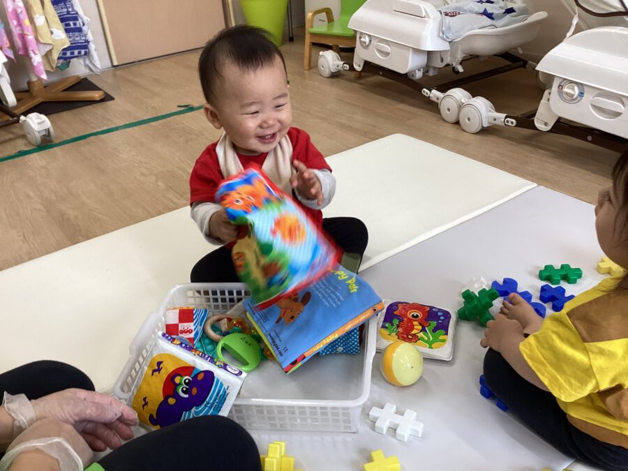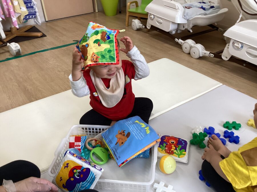 布絵本をシャカシャカ振ってみたり