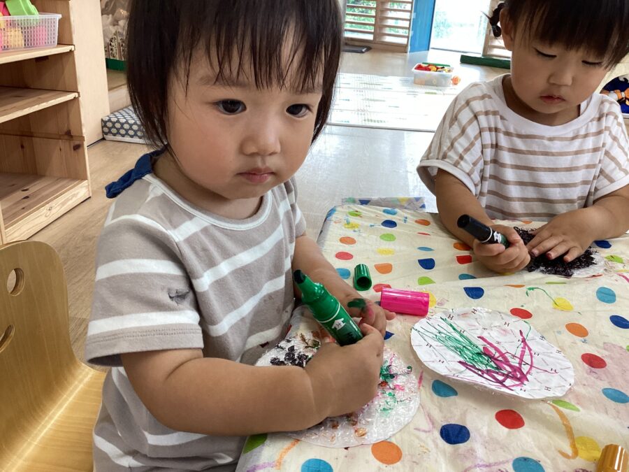その後はビニールのプチプチに色を塗ってカタツムリを作りました🐌