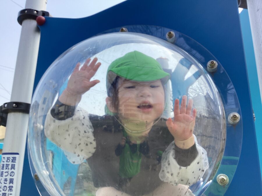 ま〜るい窓がお気に入りで、「お〜い!」「ヤッホー!」と窓を叩いて教えてくれました😊