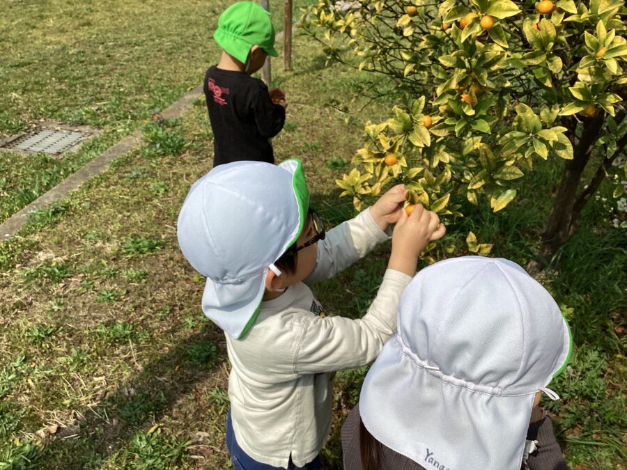落ちているキンカンの実を拾っていると、近所のおばあちゃんが来て「どんどん採っていいんだよ!」と声を掛けてくださいました。すると、「ありがとう😊」とお礼を言って、キンカン狩りがスタート‼️
