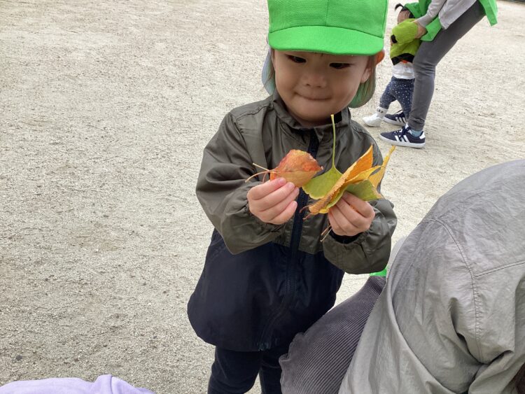 昨日に引き続き落ち葉拾いをするお友だちもいて、戸外遊びをたっぷりと楽しんでいました🙌✨