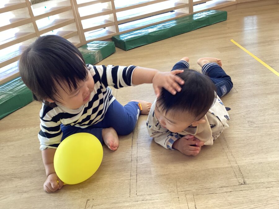 お散歩から戻ってくるとたんぽぽ組さんは、風船やボール、積み木など好きな遊びで今日も元気いっぱいでした